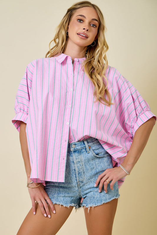 Pink Stripe Oversized Button Down