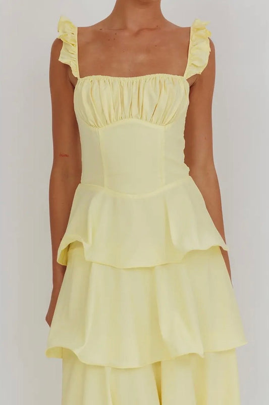 Yellow Ruffle Strap Tiered Maxi