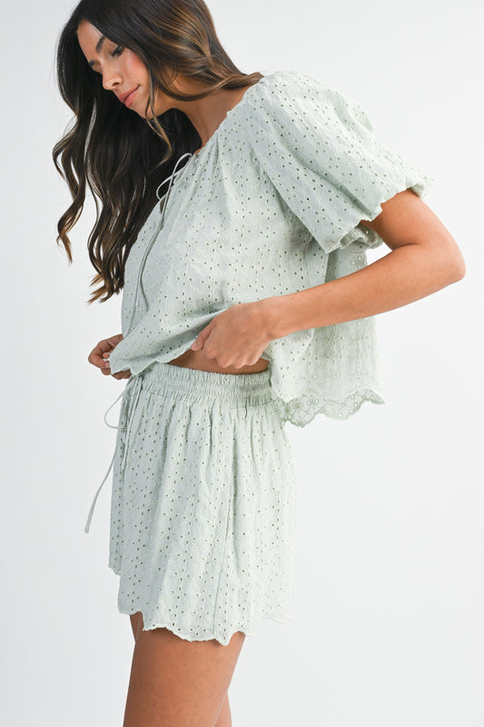 Mint Eyelet Short Set