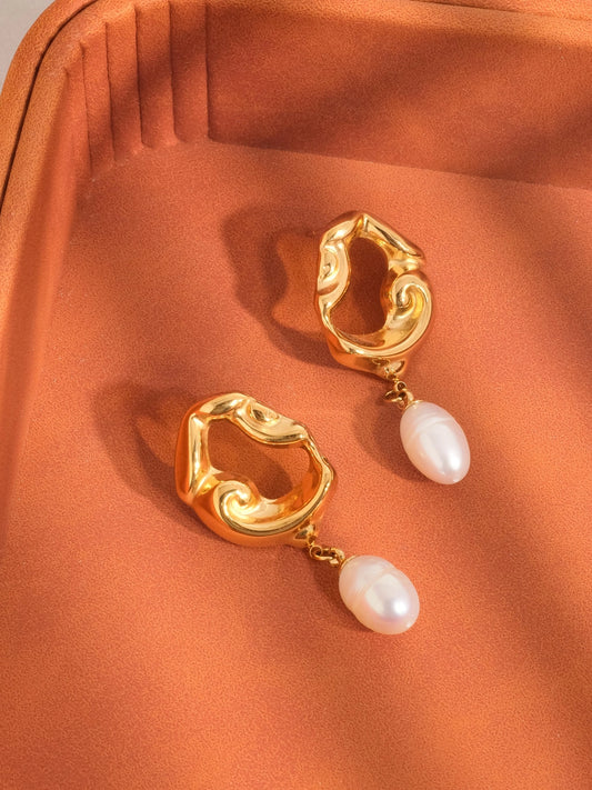 Nerissa 18K Gold Non-Tarnish Abstract Pearl Earring