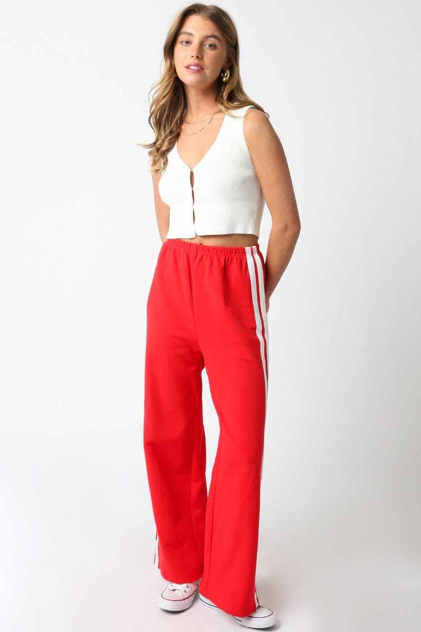 Our Reese Track Pants feature lines on the both sides and a banded waist.