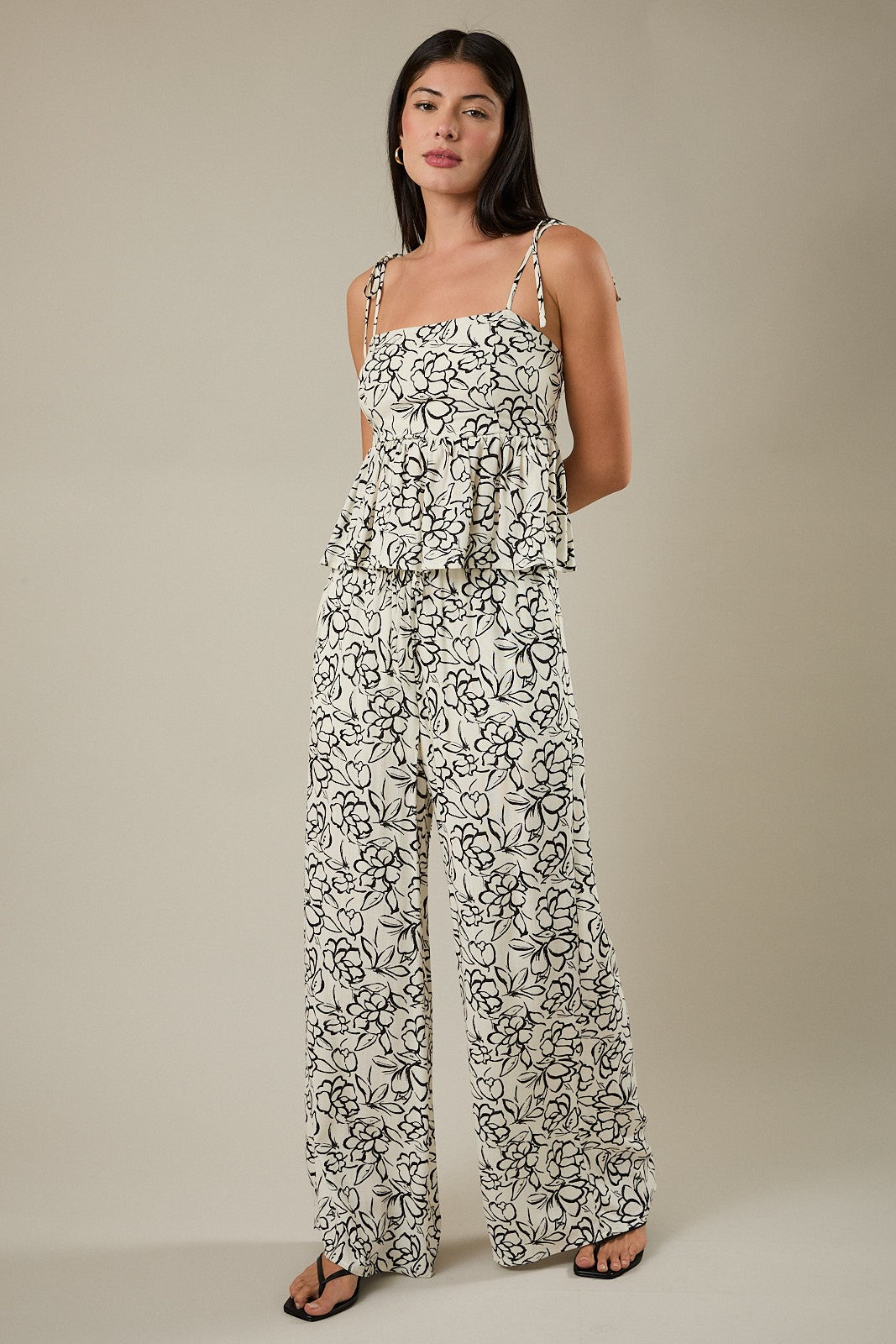 Effortlessly chic and comfy, these floral wide leg pants feature a flowy silhouette and an elastic drawstring waistband for the perfect relaxed fit. The soft neutral floral print makes them easy to style with the matching top or your favorite basics.