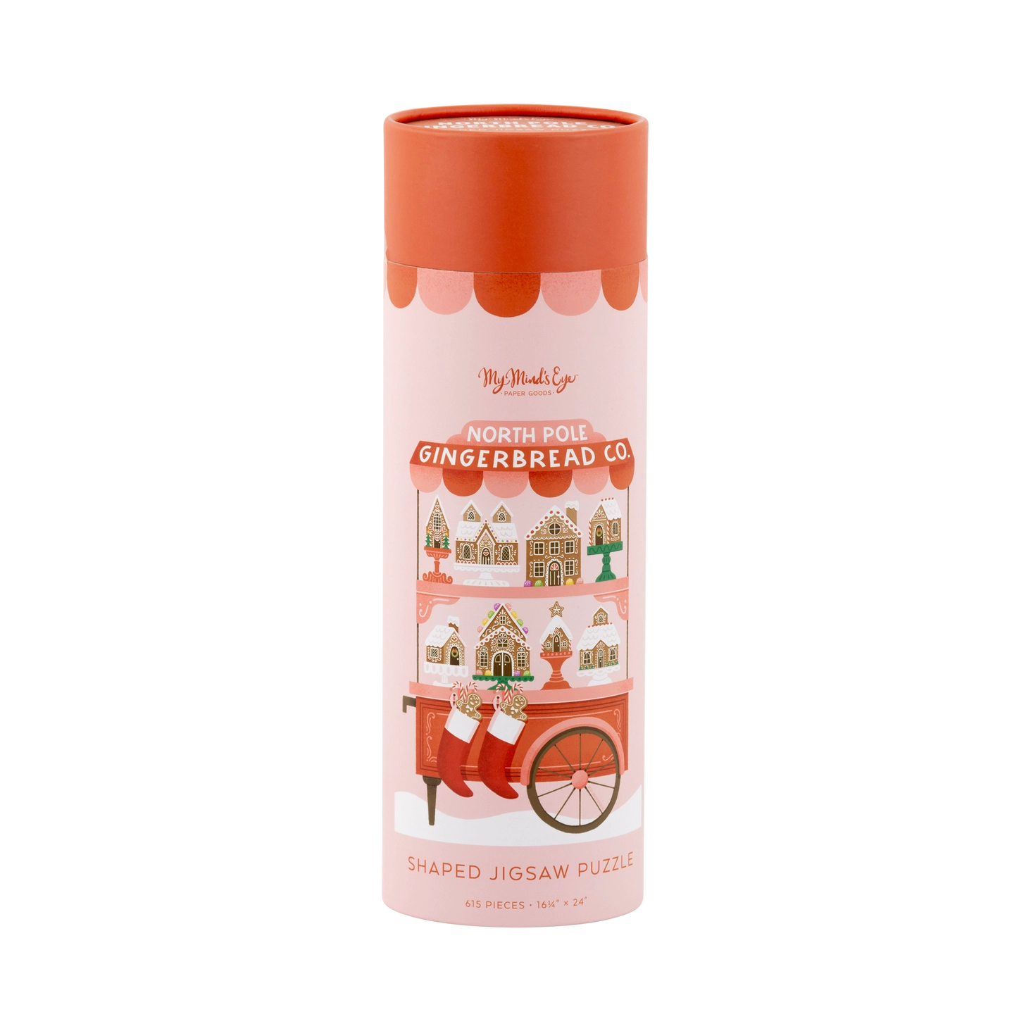 Indulge in a festive puzzle with our North Pole Gingerbread Co Shaped Christmas Puzzle. This vintage candy cart is piled high with all the gingerbread goodies and treats, create a cozy winter afternoon while putting it together with your special someone. Featured artwork from Anita Ashfield-Salter.