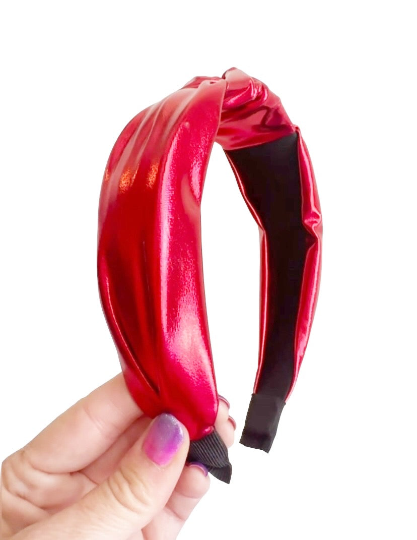 Red metallic knot headband. Perfect for so many holidays like Valentine’s Day, Christmas, Crawfish Boils, and Fourth of July!